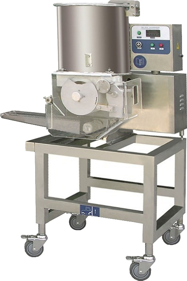 Котлетный автомат Hualian Patty-100 используется на производственных площадках, предприятиях пищевой промышленности, общественного питания и торговли. Фарш загружается в бункер с лопастями и подается порционно в барабан. В барабане фарш поступает в специальные отверстия и поршень, повторяющий форму отверстия, выдавливает сформированную котлету, которая дополнительно срезается струной. Модель оснащена конвейером, расположенным под барабаном, для вывода готовых полуфабрикатов.
