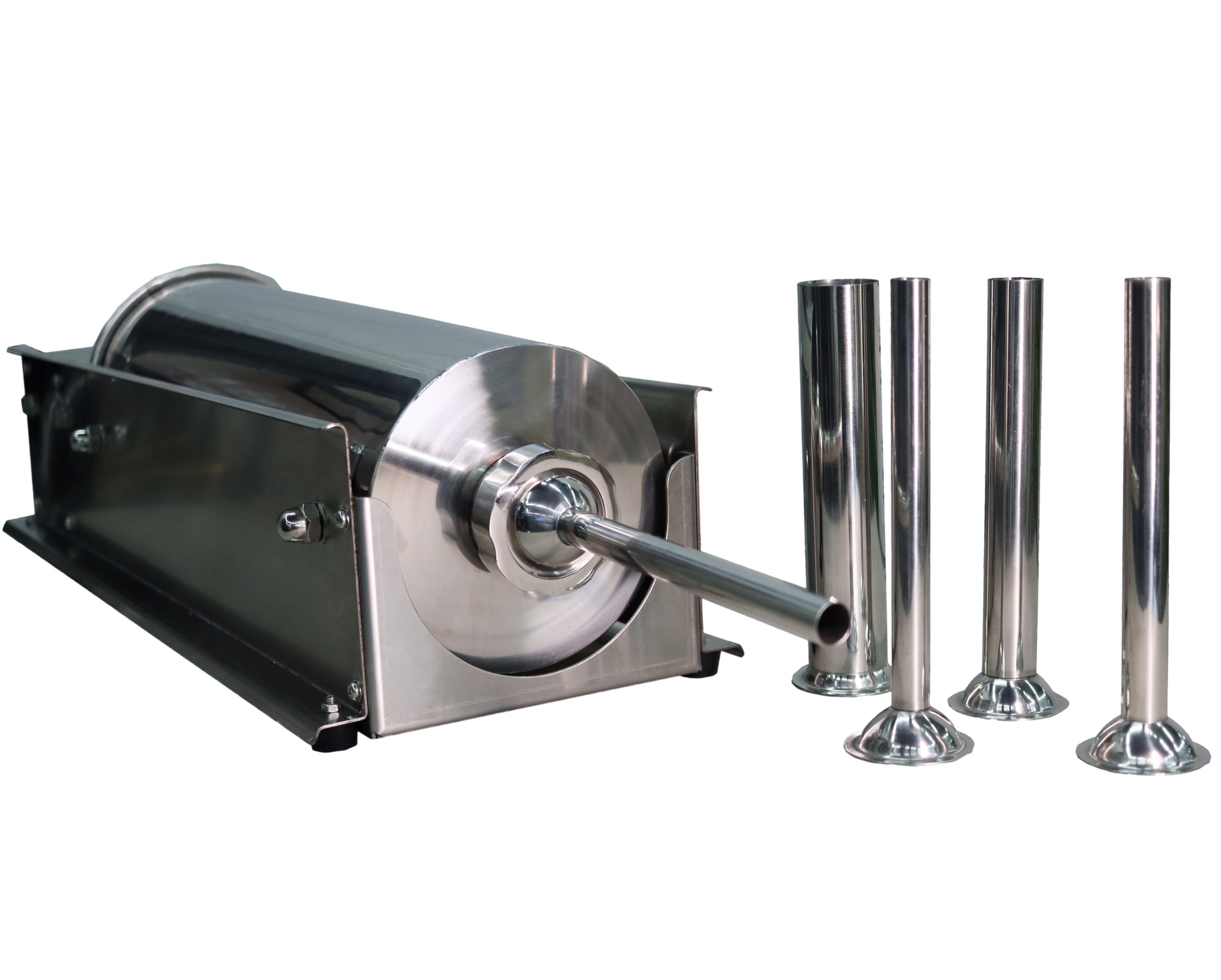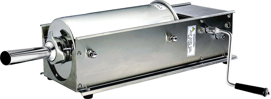 Горизонтальный колбасный шприц Rosso TV-10L используется на предприятиях общественного питания, торговли и пищевых производствах для приготовления колбас, сосисок, сарделек, купат и прочих изделий. Материал корпуса, деталей, соприкасающихся с продуктом - пищевая нержавеющая сталь.