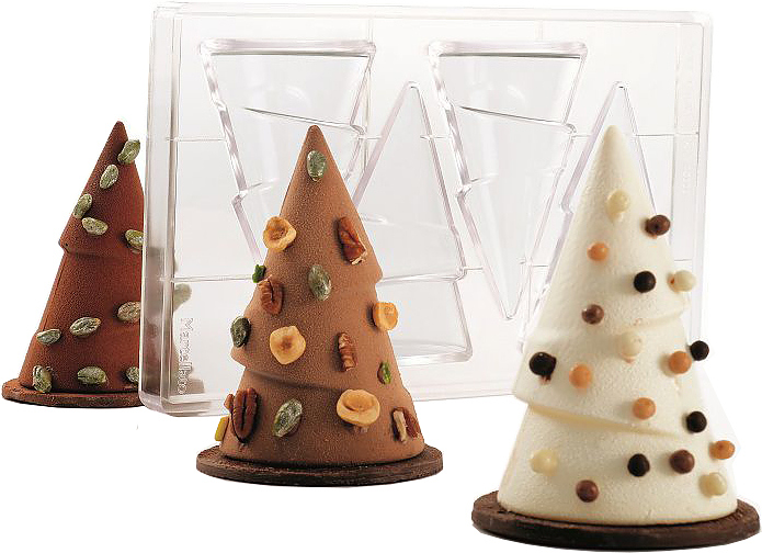 Форма Martellato MA3009 используется на предприятиях общественного питания, торговли, пищевых производствах и в домашних условиях для приготовления шоколадных конфет в форме елочки. Материал изделия - поликарбонат.