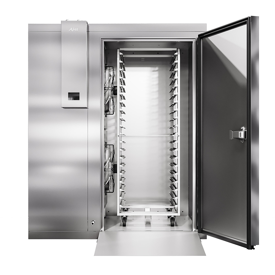 Камера шоковой заморозки Abat ШОКК-201 используется на предприятиях общественного питания, торговли и пищевых производствах для быстрой заморозки и хранения продуктов. Модель оснащена воздухоохладителем, 2 вентиляторами, навесной дверью, низкотемпературным уплотнителем, оттайкой горячим газом, подогревом и двухсторонним замком. Материал пандуса и пола камеры - рифленая нержавеющая сталь, материал стенок и потолка - сэндвич-панель из нержавеющей стали (толщина 80 мм).