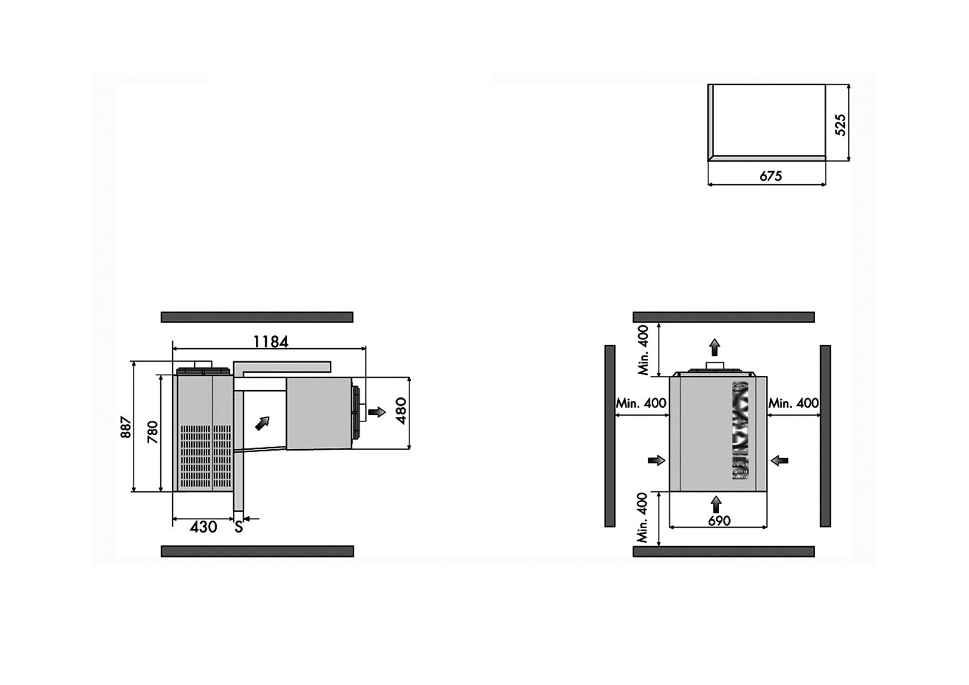 • Встроенный поддон для выпарнивания конденсата или прямой отвод