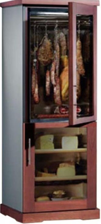 Шкаф для хранения колбас и сыра IP Industrie SAL 601 CEX серии Salumeria создает оптимальные условия для сохранения всех вкусовых свойств мясных, колбасных изделий и сыра. Модель оснащена электронным термостатом, цифровым дисплеем, подсветкой и замком. Корпус и камеры выполнены из стали с облицовкой массивом дерева, двери - из двойного стекла с защитой от ультрафиолетовых лучей, полки - из нержавеющей стали.