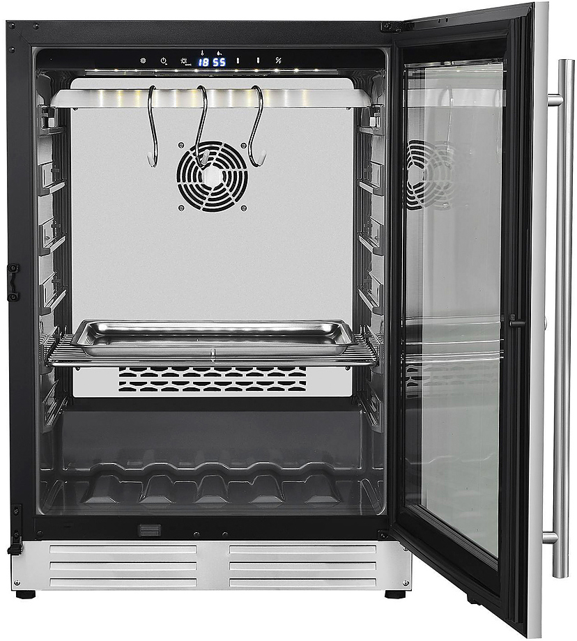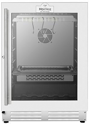 Шкаф для мяса MeatAge VI60 предназначается для охлаждения и вызревания мяса, ветчины и салями на предприятиях общественного питания и торговли, пищевых производствах, отелях, офисах, а также в домашнем использовании. Шкаф оснащен белой LED подсветкой внутреннего объема, тачпадом с подсветкой, акустической сигнализацией и запираемой дверью. Материал корпуса и комплектующих - нержавеющая сталь AISI 304, материал двери - ударопрочное закаленное стекло.