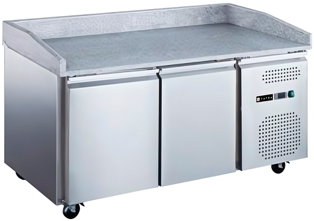 Холодильный стол Tatra TPZEN2 STB используется на предприятиях общественного питания, торговли и пищевых производствах для приготовления пиццы и хранения заготовок. Модель оснащена цифровым термостатом, эластичным уплотнителем, бортами с трех сторон и передвижными колесами, два с тормозами. Материал корпуса - высококачественная нержавеющая сталь.