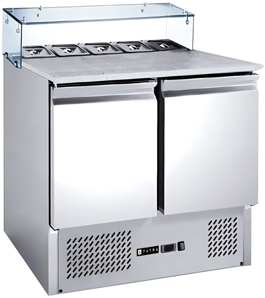 Холодильный стол Tatra TPZGNL2 VG ST используется на предприятиях общественного питания, торговли и пищевых производствах для приготовления пиццы и хранения заготовок. Модель оснащена цифровым термостатом, стеклянным козырьком, эластичным уплотнителем и регулируемыми ножками. Материал корпуса - высококачественная нержавеющая сталь.