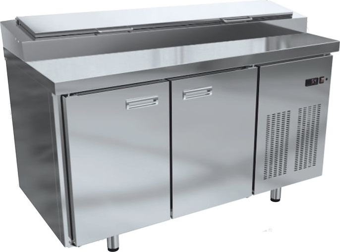 Холодильный стол KRONER СХП 3-180-70 используется на предприятиях общественного питания, торговли и пищевых производствах для раскатки теста, хранения и обработки ингредиентов перед приготовлением пиццы. Модель оснащена электронным управлением, автоматической оттайкой, встроенными ручками и регулируемыми ножками. Материал цельнозаливного корпуса, дверей и столешницы - шлифованная высококачественная нержавеющая сталь, материал задней стенки и дня - оцинкованная сталь.
