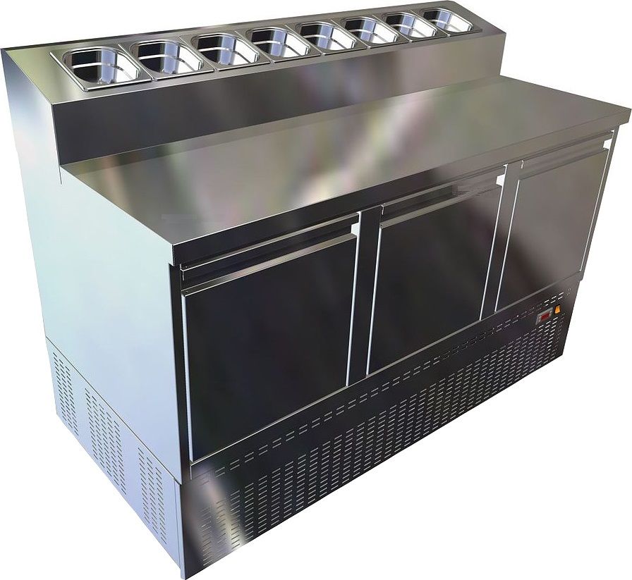 Холодильный стол Gastrolux СОП3-147/3Д/Sр серии Special предназначен для раскатки теста и обработки ингредиентов для приготовления пиццы, охлаждения и кратковременного хранения скоропортящихся продуктов и напитков на предприятиях общественного питания и торговли. Корпус и рабочая поверхность выполнены из нержавеющей стали AISI 430.