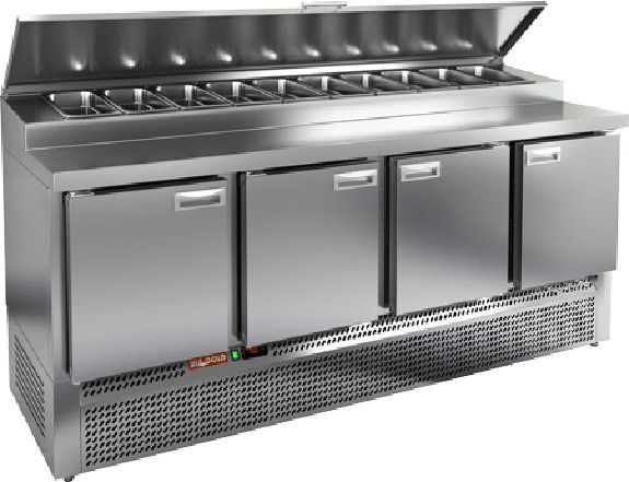 Охлаждаемый стол для пиццы PZE1-1111/GN (1/3H) выполнен из нержавеющей стали . Верх стола накрыт столешницей. В верхней части стола устанавливаются гастроемкости максимальной глубиной 150 мм (не входят в комплект поставки).