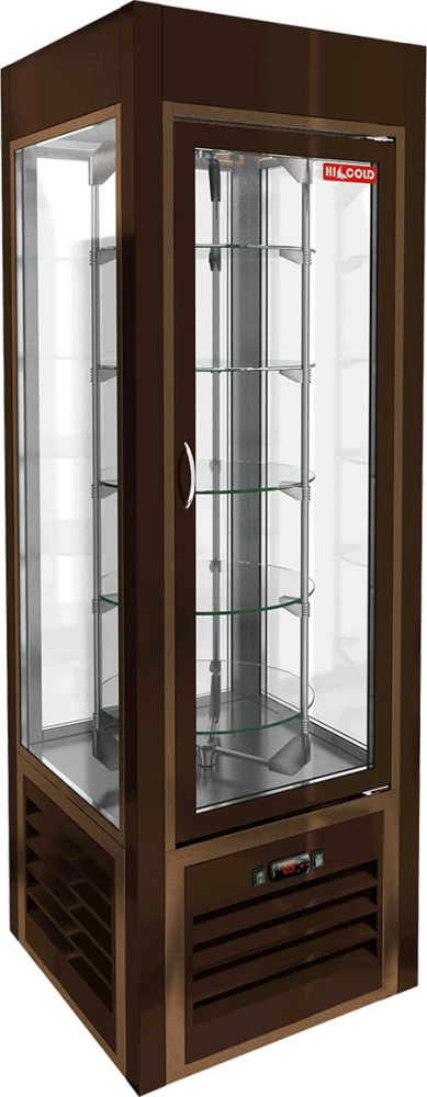 Кондитерская витрина HICOLD VRC 350 R SH Brown FR используется на предприятиях общественного питания и торговли для демонстрации, охлаждения и кратковременного хранения кондитерских изделий и десертов. Модель оснащена 5 вращающимися полками, светодиодной подсветкой и колесами со стопорами. Корпус выполнен из окрашенной стали.