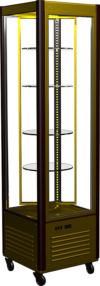 Кондитерская шкаф-витрина KAYMAN К-ШВ-400В класса люкс предназначена для охлаждения, кратковременного хранения и демонстрации выпечки, тортов, пирожных и пиццы на предприятиях общественного питания и торговли. Модель оснащена 4 полками.