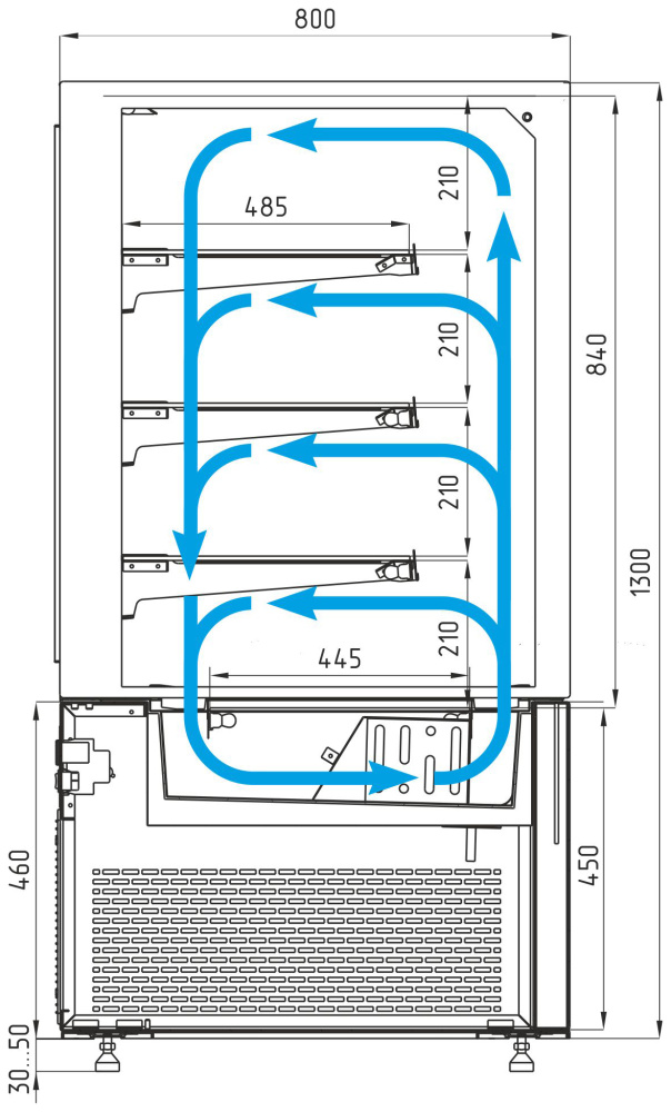 Витрина нейтральная Carboma KC78-130 N 1,5-1 COSMO используется на предприятиях общественного питания, торговли и пищевых производствах для демонстрационной выкладки и кратковременного хранения готовых блюд, напитков, кондитерских и хлебобулочных изделий. Модель оснащена LED-подсветкой, остеклением с 4 сторон, стеклянными полками, встроенными ценникодержателями и регулируемыми по высоте ножками. Материал корпуса - сталь и пластик, материал термоизоляции - пенополиуретан.