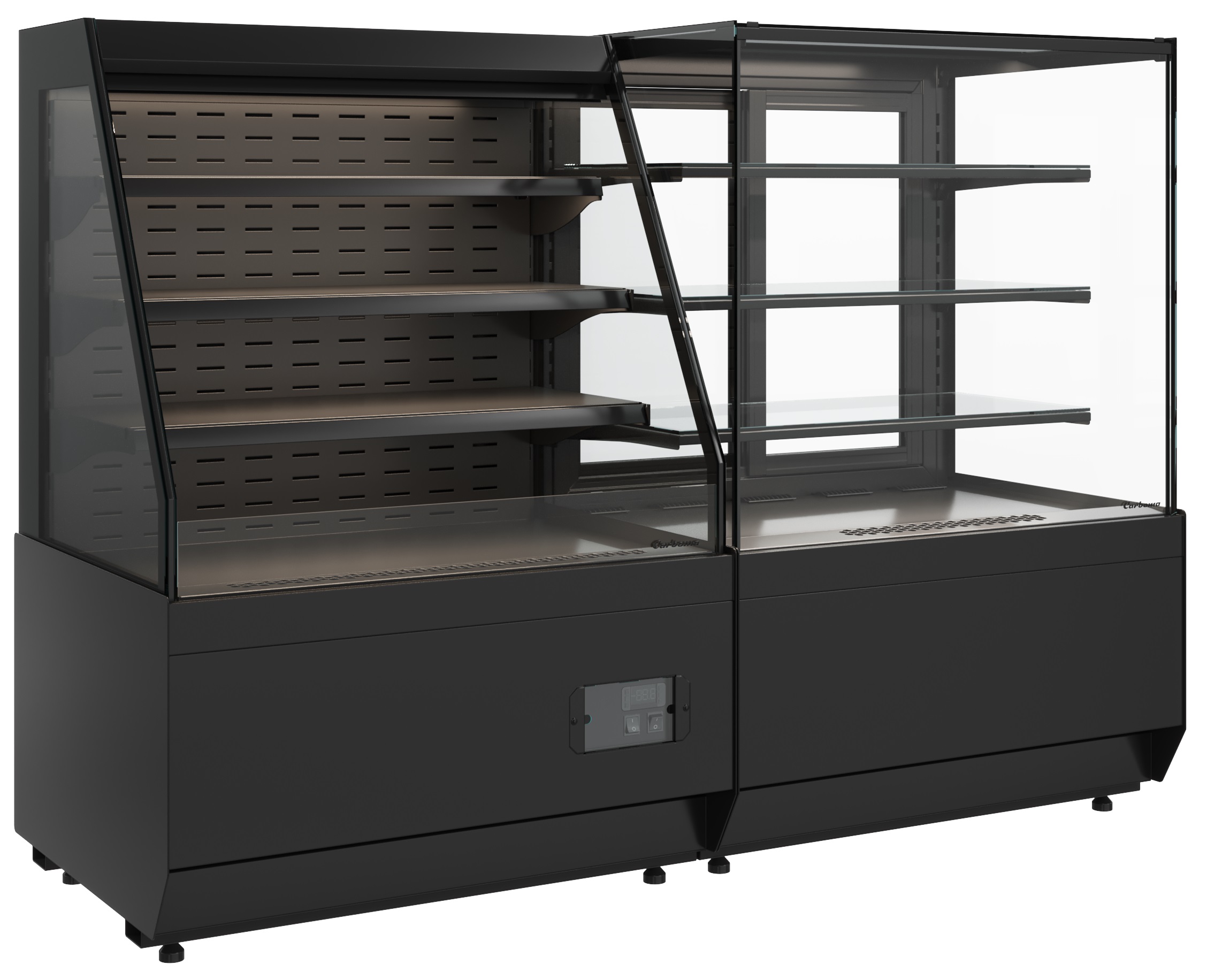 Витрина открытая Carboma KC70 VM 1,3-2 STANDARD используется на предприятиях общественного питания, торговли и пищевых производствах для демонстрационной выкладки и хранения напитков, кондитерских и хлебобулочных изделий. Модель оснащена электронным блоком управления, LED-подсветкой, цифровым контроллером, 3 регулируемыми полками, встроенной ручкой и регулируемыми ножками-опорами. Материал корпуса - сталь, материал термоизоляции - пенополиуретан, материал задних створок-слайдеров - стеклопакет.