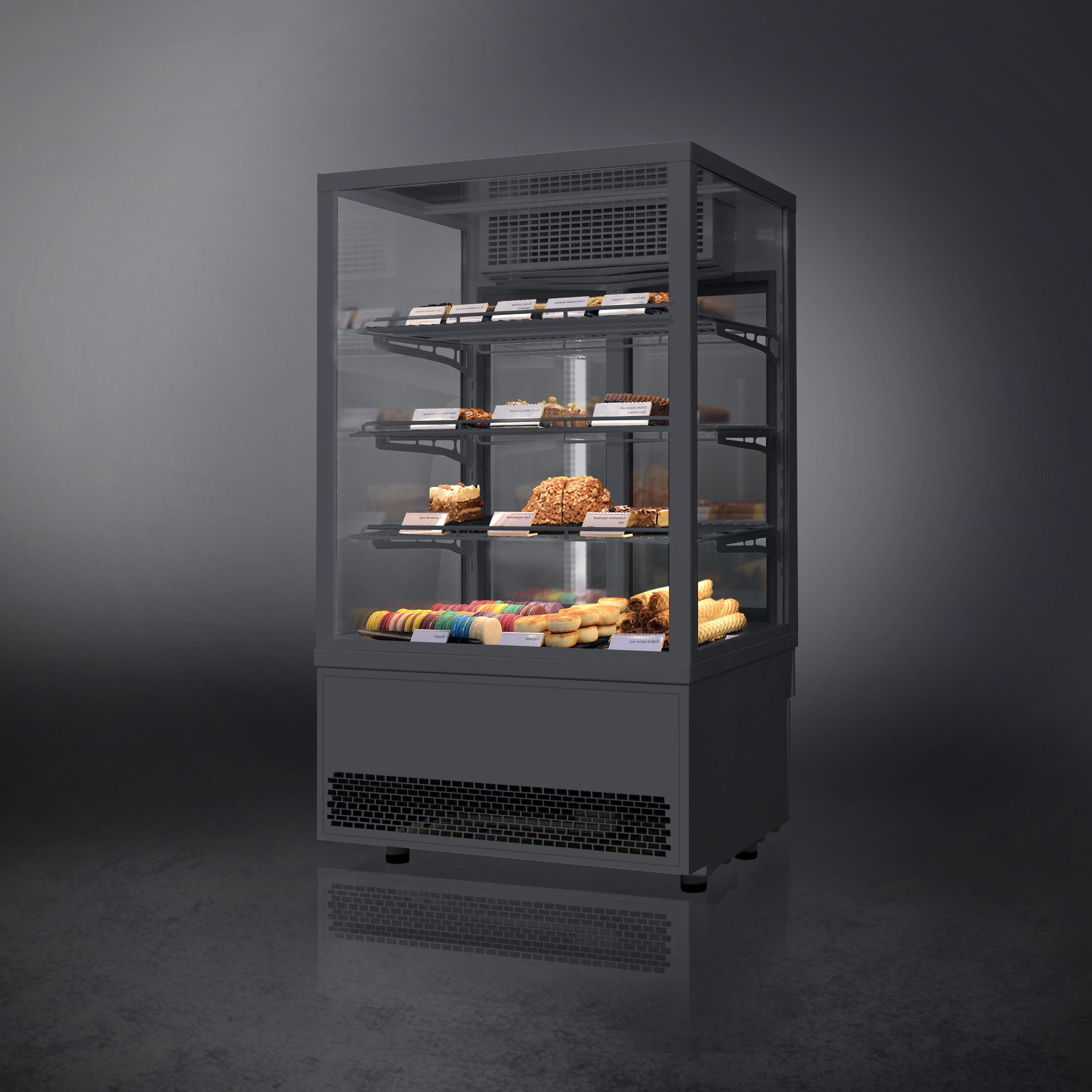 - Прозрачное остекление для оптимального обзора выкладки с 4 сторон