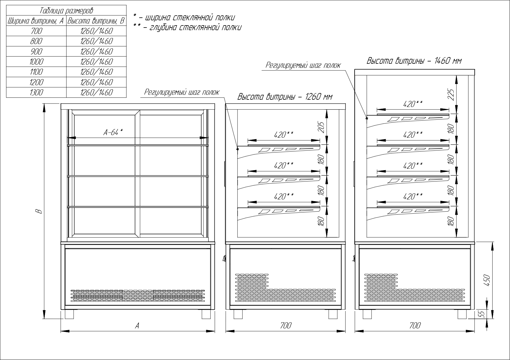 - Прозрачное остекление для оптимального обзора выкладки с 4 сторо