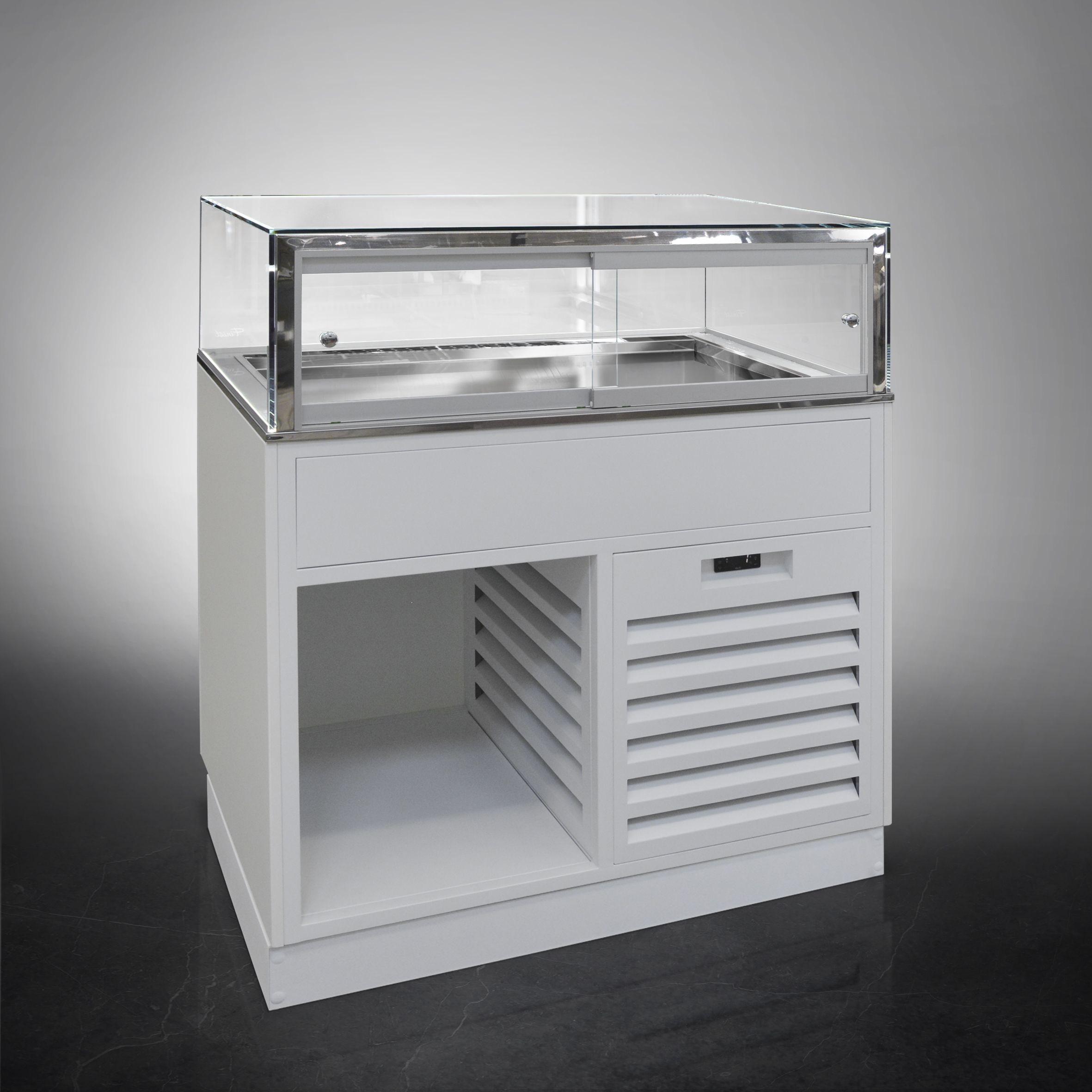 Холодильная витрина Finist GLASSIER LUX GL-12/55/3 используется для демонстрационной выкладки, охлаждения и хранения кондитерских и хлебобулочных изделий на предприятиях общественного питания и торговли. Модель оснащена микропроцессорным блоком, автоматической оттайкой, цоколем, светодиодной подсветкой и удобными дверцами купе. Материал фронтальных и боковых панелей облицовки - МДФ панели, материал купола - просветленное стекло, материал дна - высококачественная нержавеющая сталь.