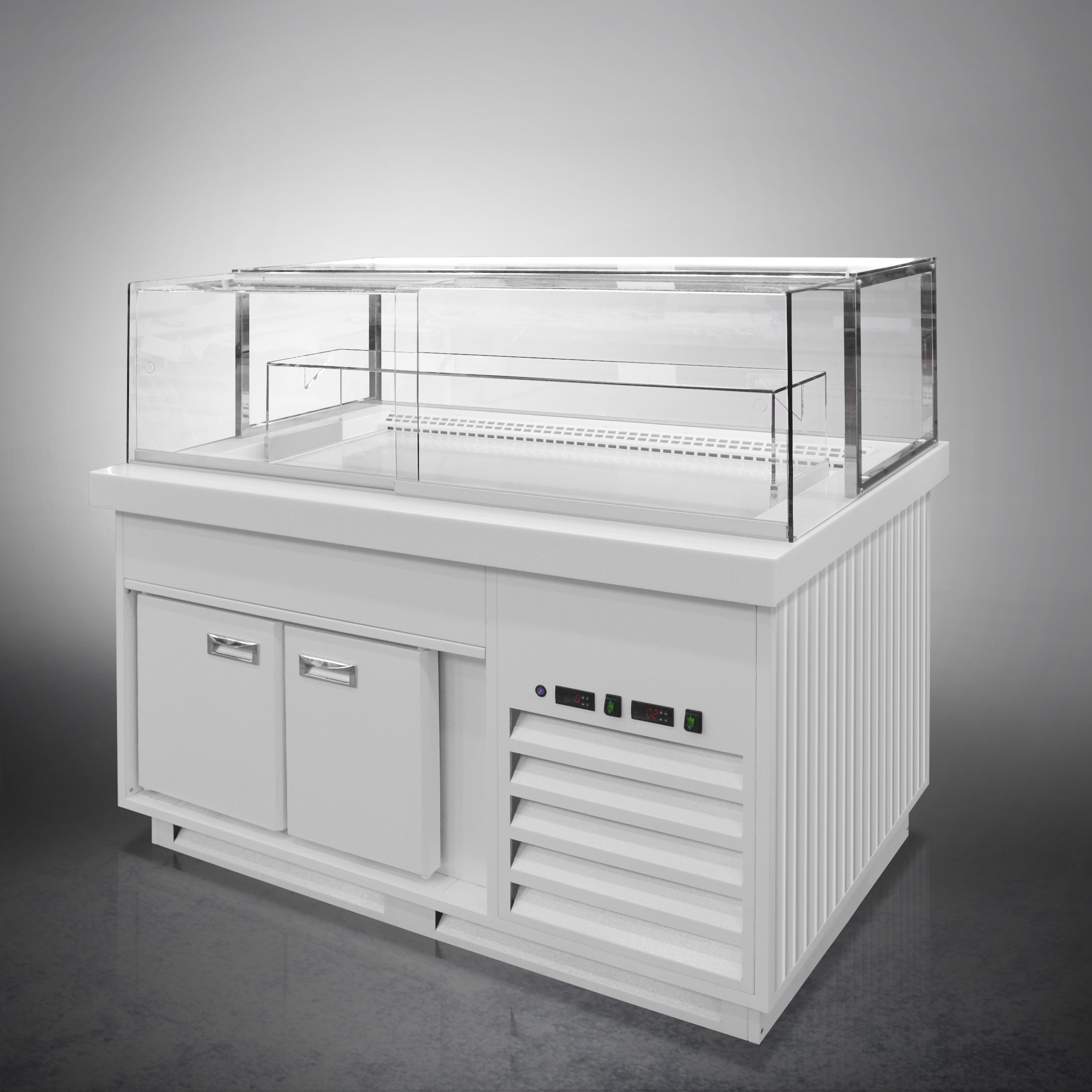 Витрина кондитерская Finist Maria Msv-21-9 используется для демонстрационной выкладки, охлаждения и хранения кондитерских и хлебобулочных изделий на предприятиях общественного питания и торговли. Модель оснащена микропроцессорным блоком, автоматической оттайкой, охлаждаемой камерой, выдвижной полкой, подсветкой и дверьми-купе. Материал фронтальных и боковых панелей облицовки - МДФ панели, материал купола и полок - просветленное стекло, материал зоны выкладки и столешницы - искусственный камень.