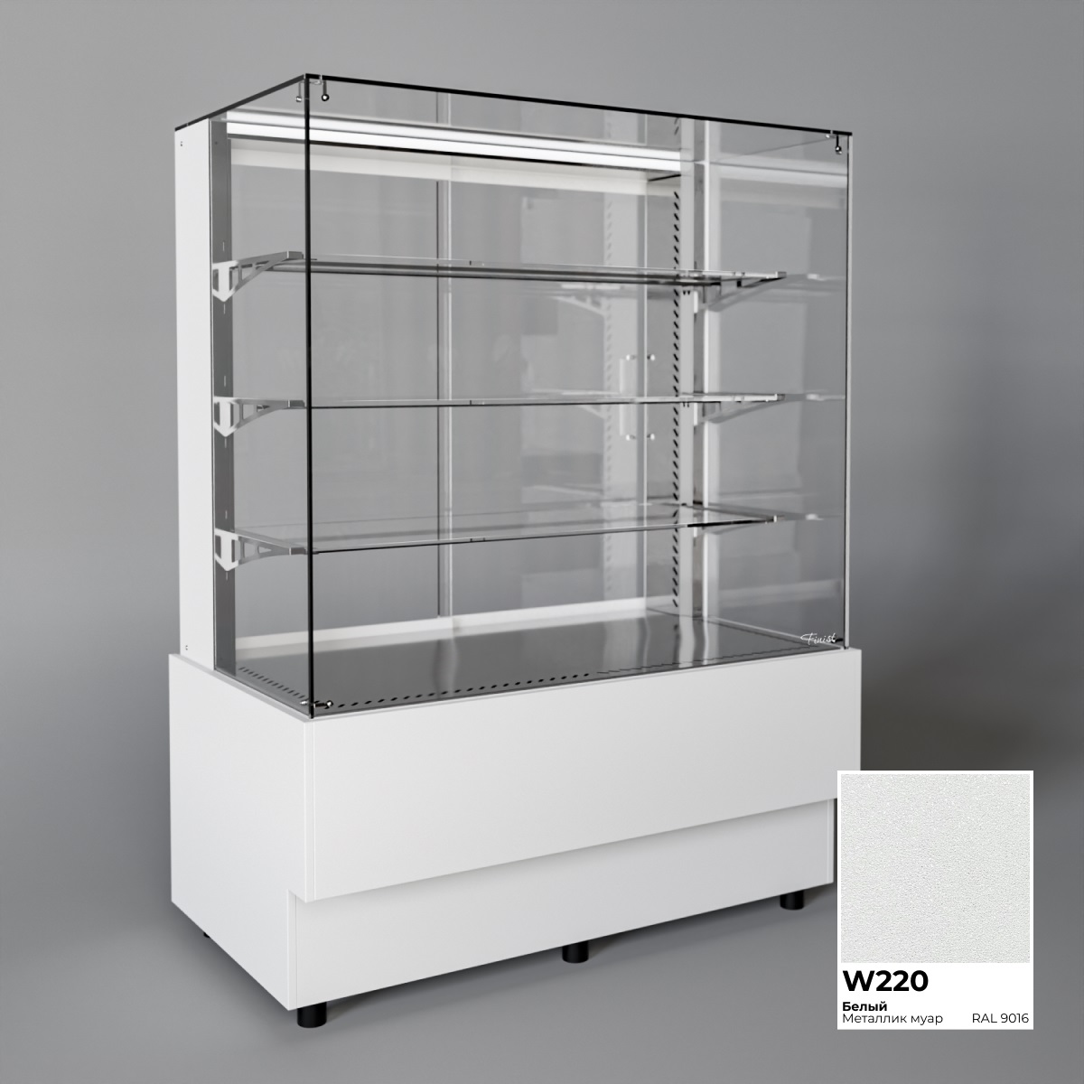 Холодильная витрина Finist AIR A-14-6-163 используется для демонстрационной выкладки, охлаждения и хранения кондитерских и хлебобулочных изделий на предприятиях общественного питания и торговли. Модель оснащена микропроцессорным блоком, автоматической оттайкой, светодиодной подсветкой каждой полки, 3 стеклянными полками и удобными дверцами купе. Материал цельнозаливного корпуса - окрашенная сталь, материал купола и полок - просветленное стекло, материал дна - зеркальная нержавеющая сталь.