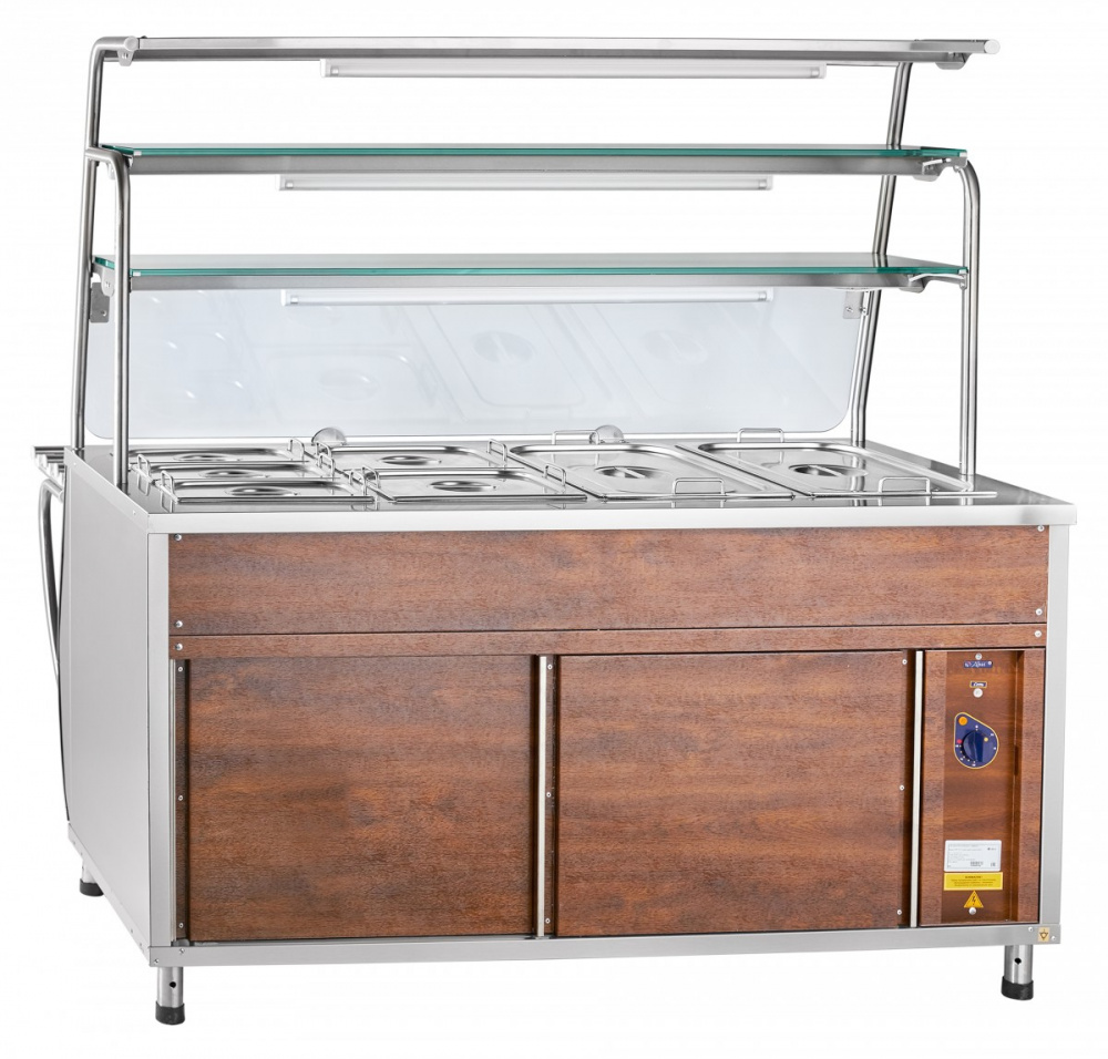 - Двойная полка над мармитом с подсветкой для выкладки блюд