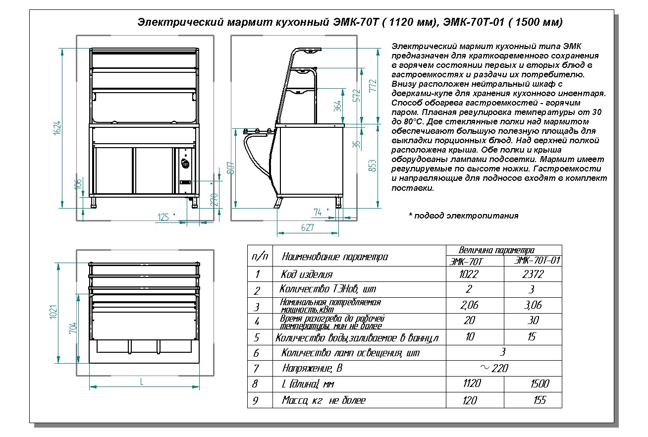 Мармит Abat ЭМК-70Т-01 предназначен для демонстрации, кратковременного хранения и поддержания вторых блюд в горячем состоянии в составе линий раздач на предприятиях общественного питания и торговли. Модель оснащена регулируемыми по высоте ножками.
