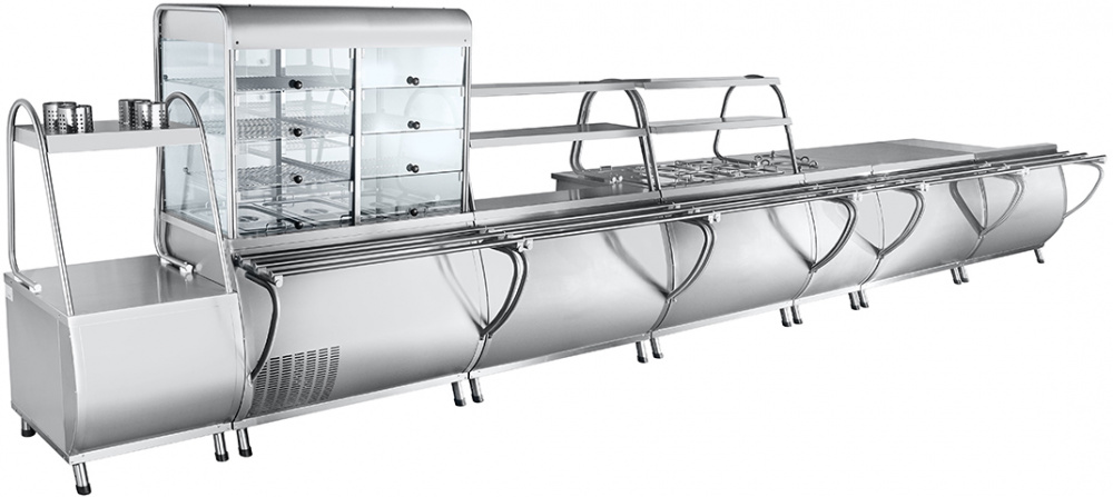 Поворотный модуль Abat МП-45М-01 предназначен для выкладки хлебобулочных, кондитерских изделий, посуды и столовых приборов в составе линий раздач на предприятиях общественного питания и торговли.
