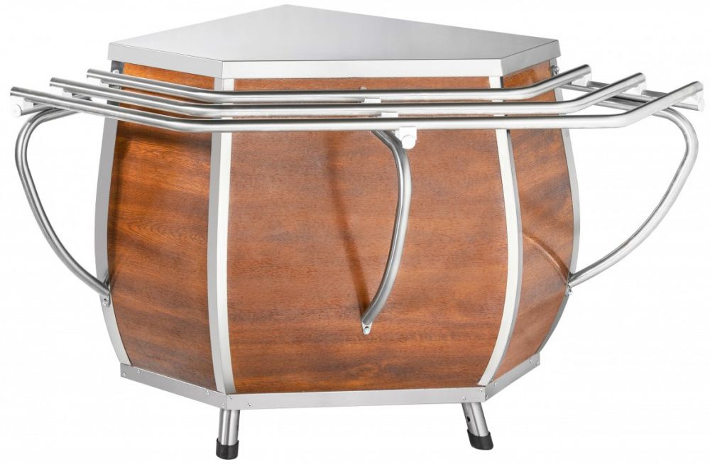 Конструкция выполнена из металла, кашированного под дерево.