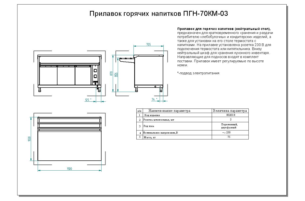 Прилавок для горячих напитков Abat ПГН-70КМ-03 предназначен для демонстрации, кратковременного хранения и последующей раздачи хлебобулочных и кондитерских изделий, термостатов с напитками в составе линий раздач на предприятиях общественного питания и торговли. Модель оснащена регулируемыми по высоте ножками.
