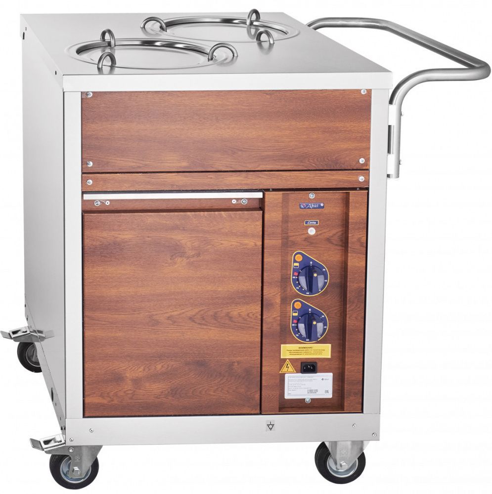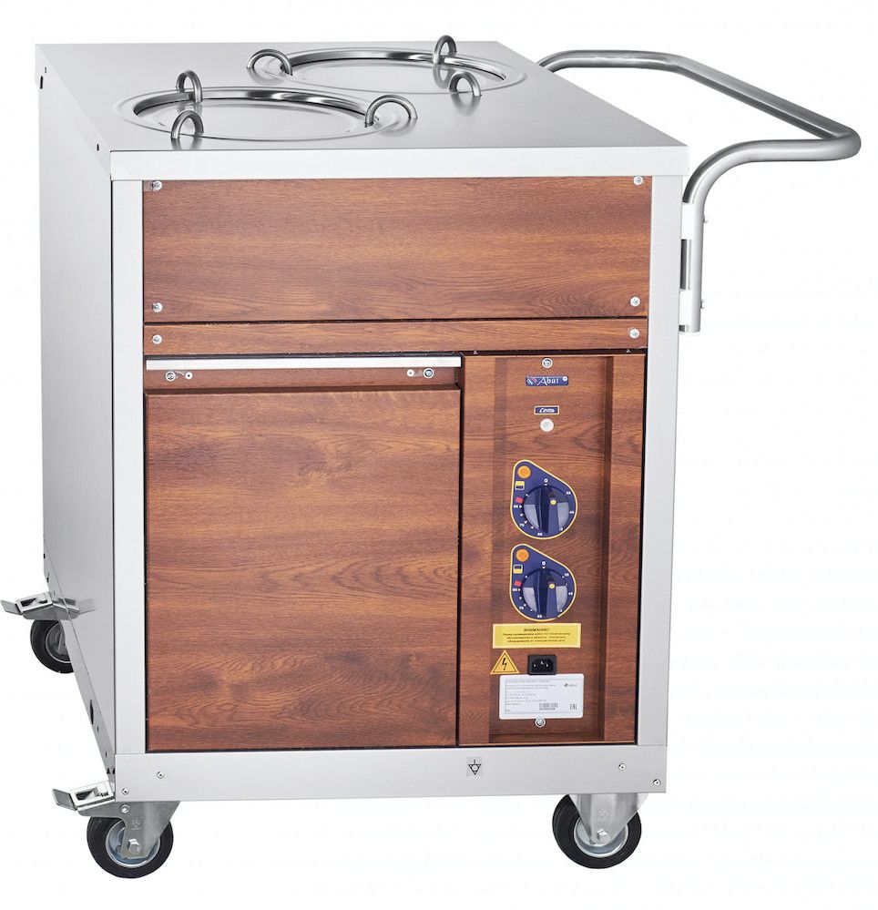 Прилавок для подогрева тарелок Abat ПТЭ-70КМ(П)-80 предназначен для подготовки посуды к последующему использованию и поддержания в теплом состоянии в составе линий раздач на предприятиях общественного питания и торговли. Модель оснащена пружинным механизмом кассетницы, которая производит автоматический подъем тарелок по мере их использования и регулируемыми по высоте ножками.