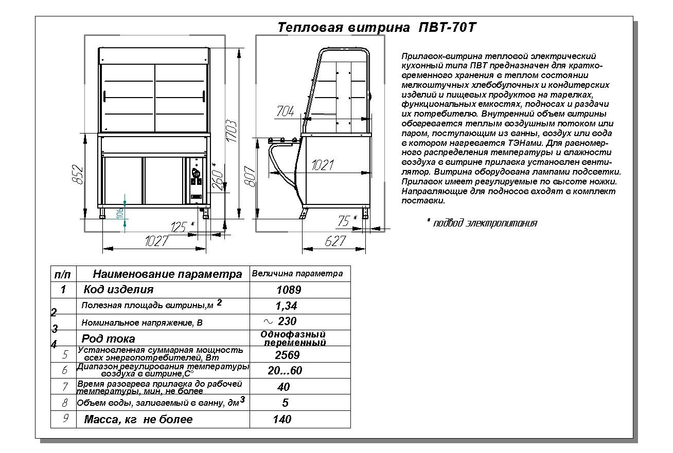 Прилавок-витрина Abat ПВТ-70Т предназначен для демонстрации, кратковременного хранения и поддержания в теплом состоянии блюд и закусок в составе линий раздач на предприятиях общественного питания и торговли. Модель оснащена регулируемыми по высоте ножками.