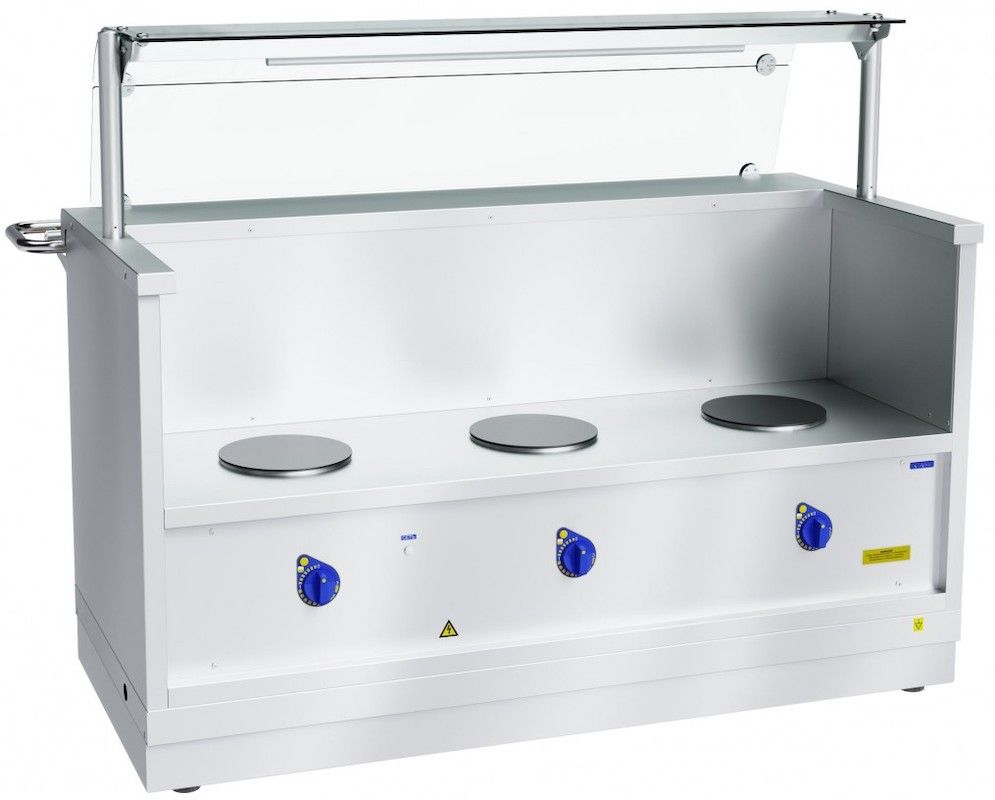 Мармит Abat ПМЭС-70Х-01 используется на предприятиях общественного питания и торговли для поддержания в горячем состоянии наплитной посуды с первыми блюдами и их раздачи потребителю. Модель оснащена 3 круглыми конфорками и 3 переключателями, позволяющими регулировать их температуру. Корпус и панели выполнены из нержавеющей стали.