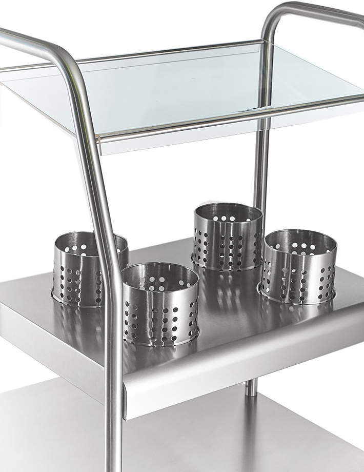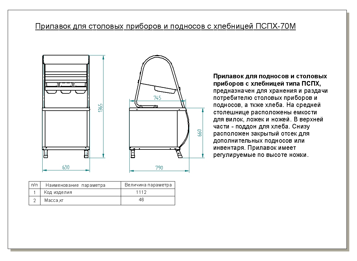Прилавок для приборов Abat ПСПХ-70КМ используется в составе линии раздачи Аста для кратковременного хранения и подготовки к раздаче столовых приборов и нарезанного хлеба на предприятиях общественного питания и торговли. Ножки регулируются по высоте. Материал столешницы и стаканов - нержавеющая сталь.