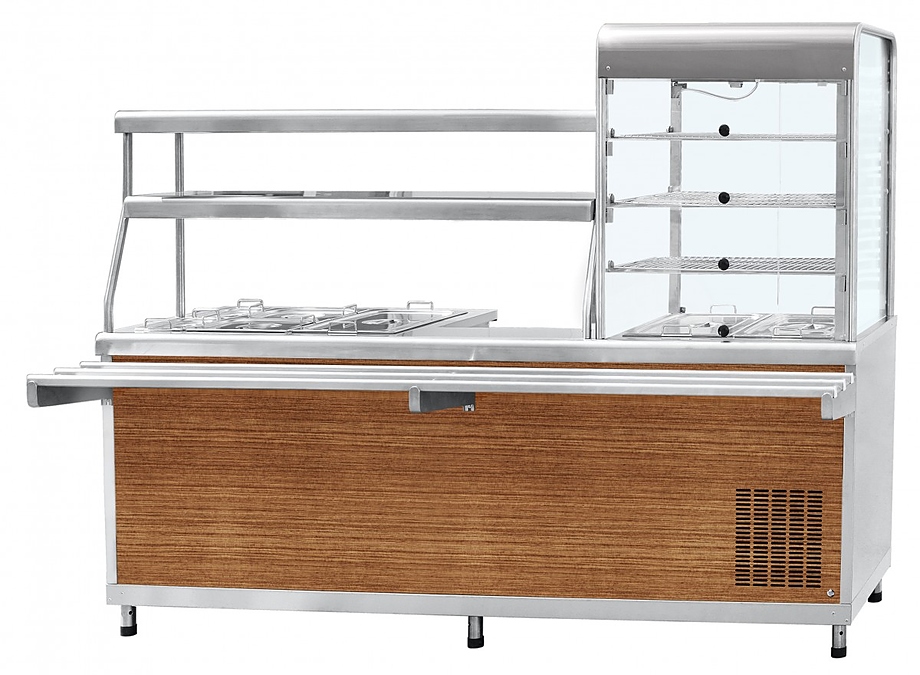 - Двойная полка над мармитом с подсветкой для выкладки блюд