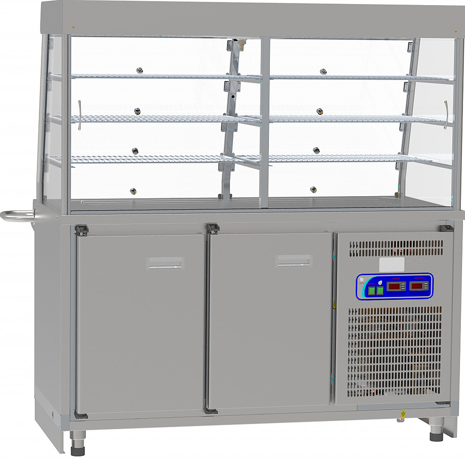 Холодильный прилавок-витрина Abat ПВВ(Н)-70Х-С-01-ОК используется на предприятиях общественного питания и торговли для кратковременного хранения, демонстрации и раздачи холодных закусок, третьих блюд и охлажденных напитков потребителю. Модель оснащена 3 вместительными полками и плоской столешницей. Корпус и панели выполнены из нержавеющей стали.