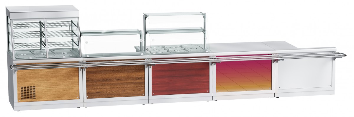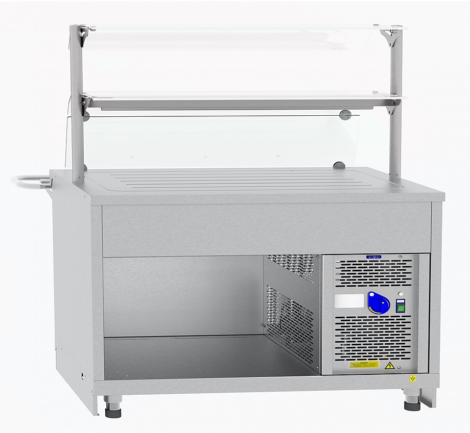 Прилавок Abat ПВВ(Н)-70Х-07-НШ предназначен для демонстрационной выкладки, кратковременного хранения и охлаждения различных блюд в составе линий раздач HOT-LINE на предприятиях общественного питания и торговли. Модель с охлаждаемой столешницей, 2 полками, LED-подсветкой, шкафом для хранения инвентаря и регулируемыми ножками. Материал съемных панелей - высококачественная нержавеющая сталь.