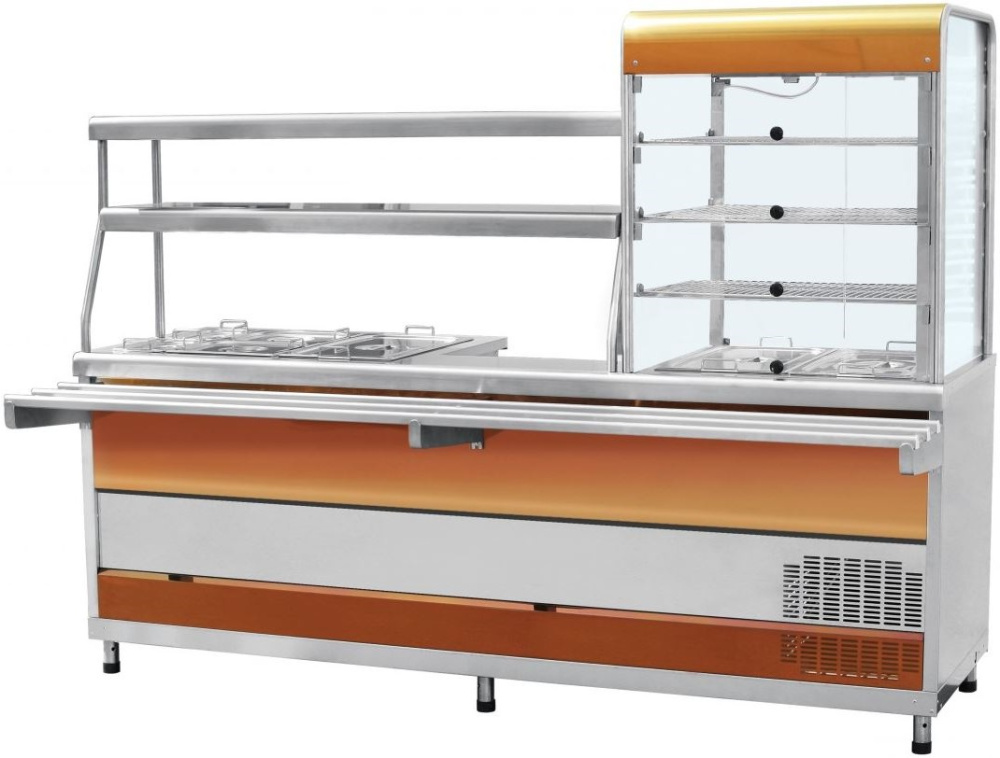 Прилавок-витрина Abat ПВХМ-70КМУ используется для демонстрационной выкладки, охлаждения, кратковременного хранения и поддержания первых и вторых блюд в горячем состоянии в составе линий раздач на предприятиях общественного питания и торговли. Модель с регулируемыми по высоте ножками.