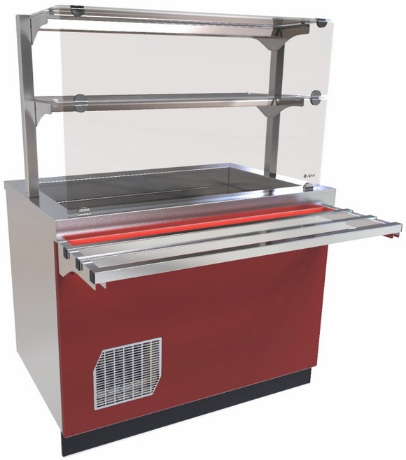 Прилавок-витрина Abat ПВВ(Н)-70Е-02-НШ используется для демонстрационной выкладки, охлаждения, кратковременного хранения закусок, третьих блюд и напитков в составе линий раздач на предприятиях общественного питания, торговли и пищевых производствах. Модель со светодиодной подсветкой, 2 полками, нейтральным шкафом для хранения кухонного инвентаря и регулируемыми по высоте ножками.