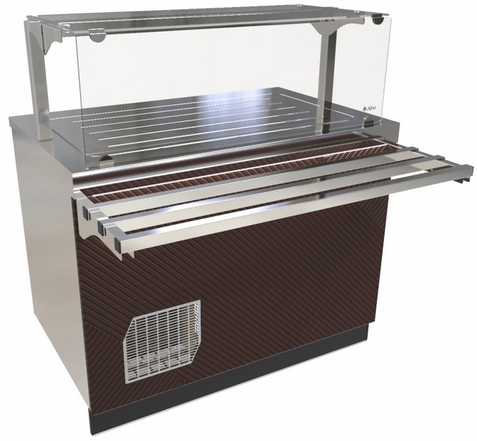 Прилавок-витрина Abat ПВВ(Н)-70Е-04-НШ используется для демонстрационной выкладки, охлаждения, кратковременного хранения закусок, третьих блюд и напитков в составе линий раздач на предприятиях общественного питания, торговли и пищевых производствах. Модель оснащена охлаждаемой поверхностью, со светодиодной подсветкой, полкой, нейтральным шкафом для хранения кухонного инвентаря и регулируемыми по высоте ножками.
