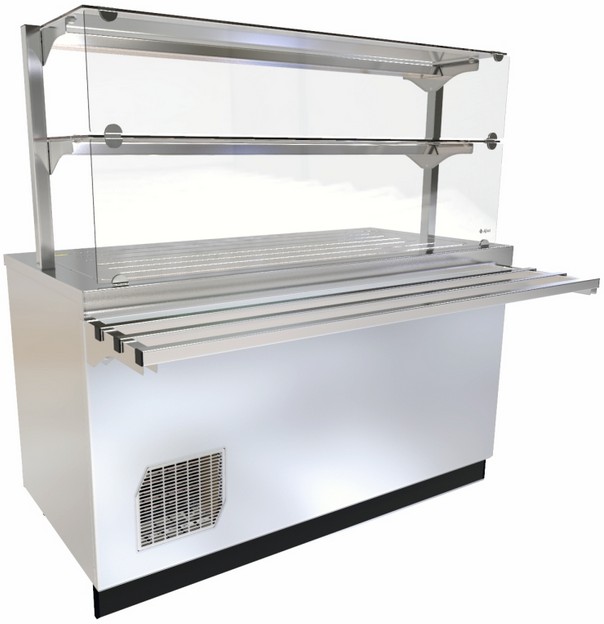 Прилавок-витрина Abat ПВВ(Н)-70Е-07-НШ используется для демонстрационной выкладки, охлаждения, кратковременного хранения закусок, третьих блюд и напитков в составе линий раздач на предприятиях общественного питания, торговли и пищевых производствах. Модель оснащена охлаждаемой поверхностью, со светодиодной подсветкой, 2 полками, нейтральным шкафом для хранения кухонного инвентаря и регулируемыми по высоте ножками.
