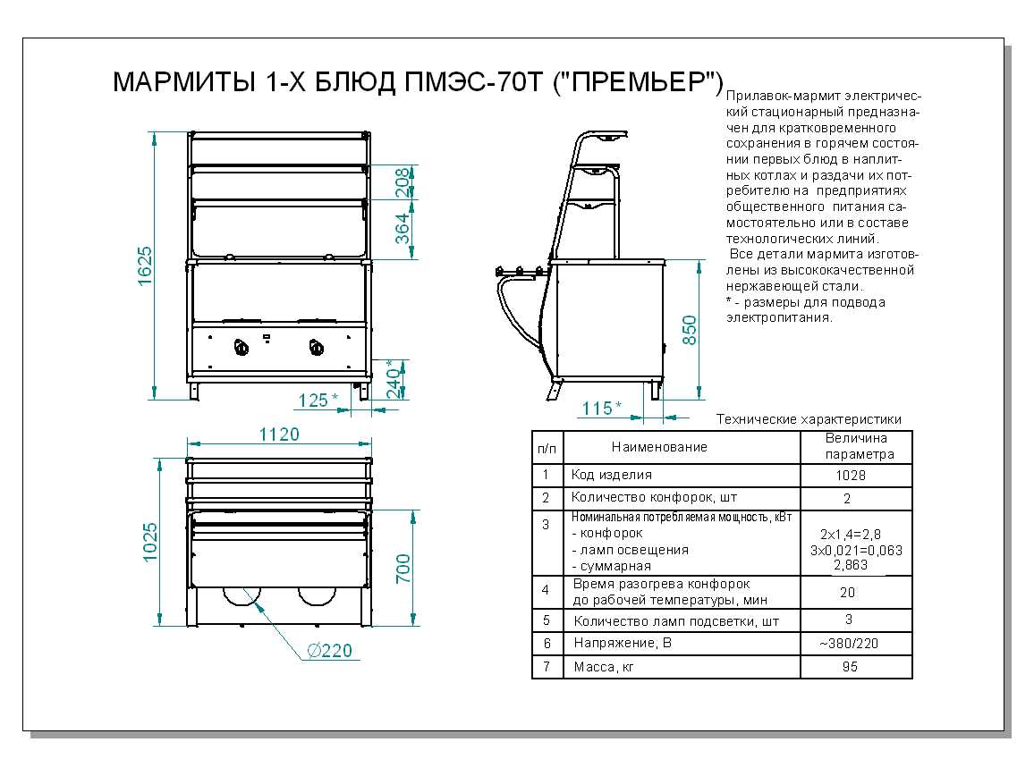 Мармит Abat ПМЭС-70Т предназначен для демонстрации, кратковременного хранения и поддержания первых блюд в горячем состоянии в составе линий раздач на предприятиях общественного питания и торговли. Модель оснащена регулируемыми по высоте ножками.