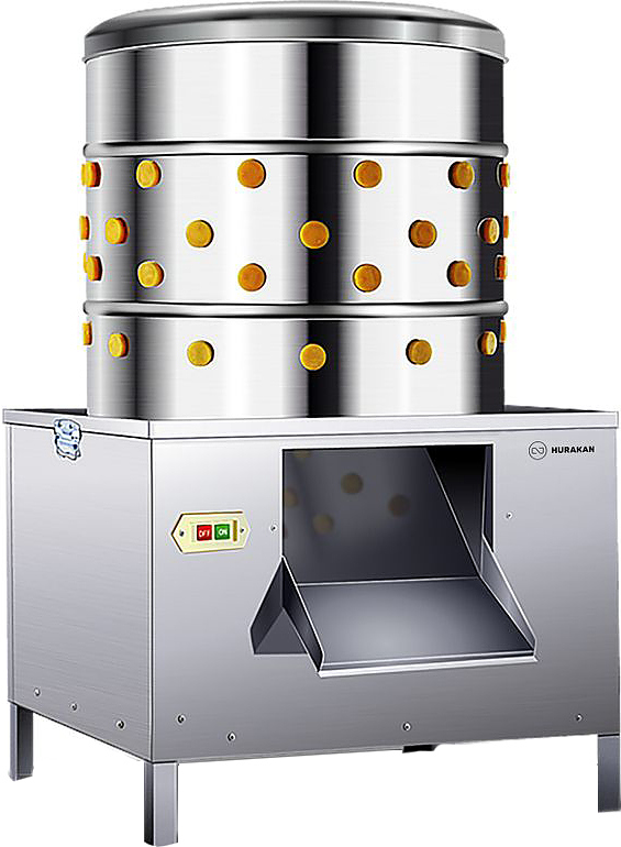 Перосъемная машина Hurakan HKN-CFD55 используется на птицефабриках и в фермерских хозяйствах ощипывания перьев с мокрых тушек птицы. Материал корпуса - высококачественная нержавеющая сталь SS430 толщиной 0.6 мм.