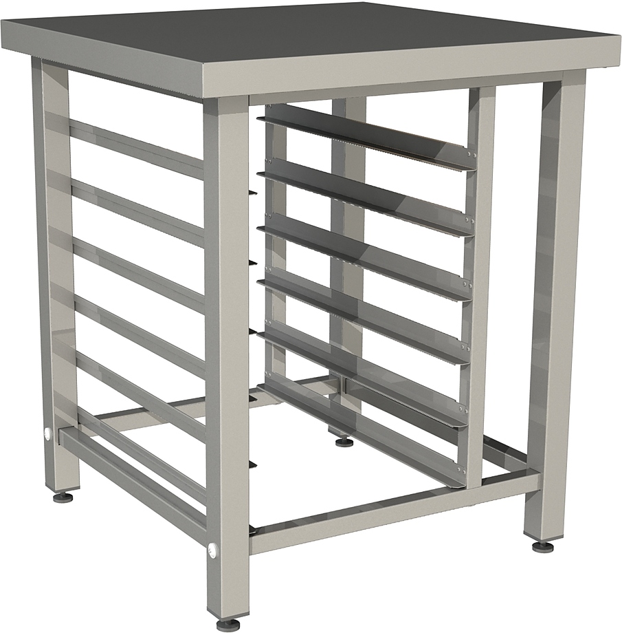 Подставка Restoinox ПКПР-1-61/60 предназначается для установки конвекционных печей UNOX XEFT и UNOX XFT а также SMEG ALFA 43 на предприятиях общественного питания, торговли и пищевых производствах. Опоры ножек регулируются по высоте. Материал разборного каркаса - труба из нержавеющей стали AISI 430 (40x40 мм), материал столешницы и направляющих - нержавеющая сталь AISI 430.