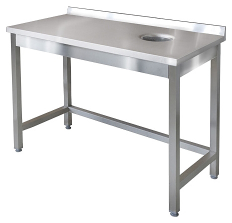 Стол ITERMA СБ-241/1206П используется на предприятиях общественного питания и торговли для разделки и обработки пищевых продуктов, а также для сбора отходов, появляющихся в процессе этой работы. Модель оснащена ножками, регулирующимися по высоте. Разборный каркас выполнен из нержавеющей стали, столешница - из нержавеющей стали с двойной ламинированной ДСП. Отверстие для сбора отходов расположено справа.