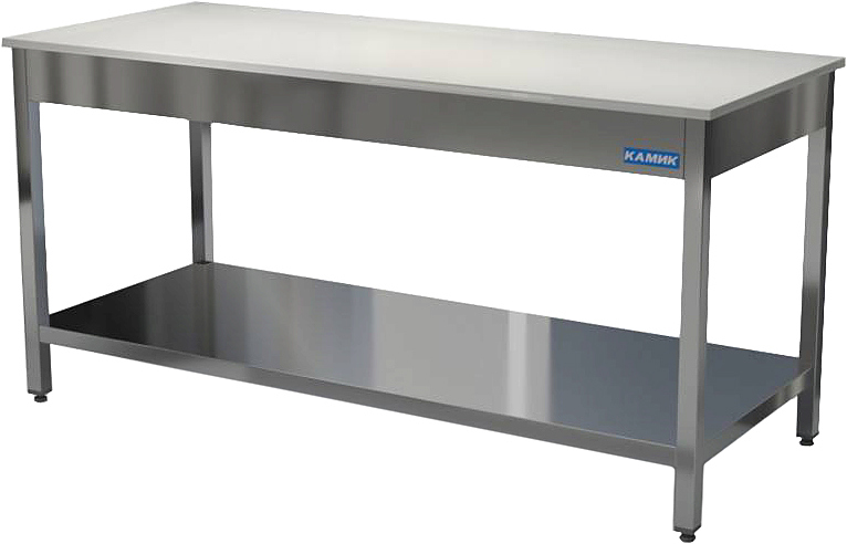 Разделочный стол КАМИК С-СПР-4174+П используется на предприятиях общественного питания и торговли для разделки и приготовления различных блюд. Каркас стола выполнен из нержавеющей стали AISI 430, столешница - полипропилен толщиной 20мм. Ножки - труба 40х40 мм.