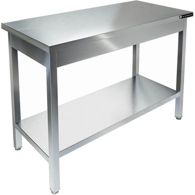 Производственный стол KAYMAN СЦ-222/1507 используется на предприятиях общественного питания и торговли для раскатки теста и обработки ингредиентов для приготовления блюд, а также как дополнительное место для установки и хранения кухонных приборов, инвентаря и сухих продуктов. Каркас выполнен из нержавеющей трубы AISI 430 40х40 мм, столешница - из нержавеющей стали AISI 430 толщиной 0,8 мм, усилена листом ЛДСП толщиной 16 мм.
