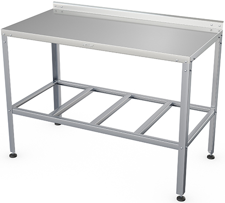 Производственный стол ATESY СР-Б-1-800.600-02 серии Бюджет предназначается для разделывания и обработки пищевых продуктов, использования кухонного оборудования на предприятиях общественного питания, торговли и пищевых производствах. Конструкция - разборная. Кромки столешницы и каркаса имеют безопасную фальцовку, углы столешницы заварены и зашлифованы. Опоры ножек регулируются по высоте. Материал каркаса и полки - оцинкованная сталь, материал столешницы - нержавеющая сталь AISI 430.