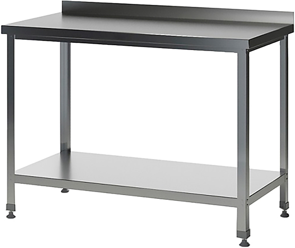 Производственный стол Astropit АСРБ-07070-УОПО используется на предприятиях общественного питания, торговли и пищевых производствах для раскатки теста, приготовления различных блюд и хранения кухонных принадлежностей. Материал рабочей поверхности – нержавеющая сталь AISI 430, материал сплошной полки – оцинкованная сталь, полка усилена листом ДСП (толщина 16мм).