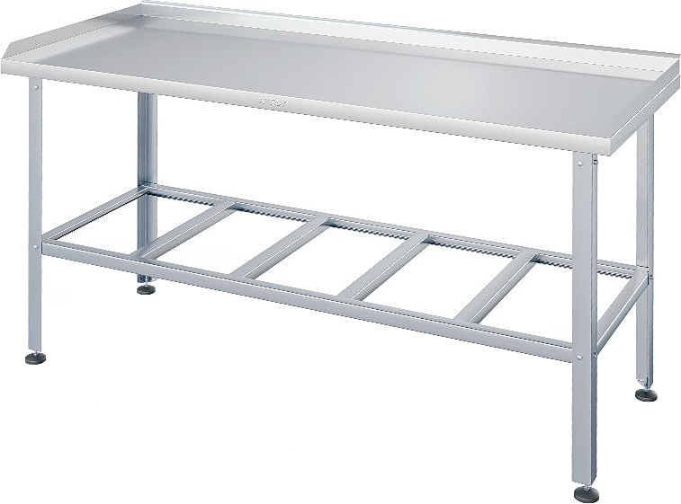 Производственный стол ATESY СР-С-3-1000.700-02 серии Стандарт используется на предприятиях общественного питания, торговли и пищевых производствах для раскатки теста, приготовления различных блюд и хранения кухонных принадлежностей. Материал рабочей поверхности – нержавеющая сталь AISI 430 усилена листом ЛДСП (толщина 16 мм), материал каркаса – оцинкованный уголок (толщина 1.2 мм), конструкция - разборная.