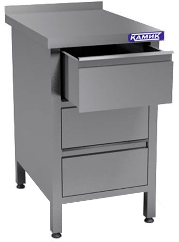 Стол производственный КАМИК СБЗЯ-4643 используется на предприятиях общественного питания, торговли и пищевых производствах для приготовления широкого спектра блюд и обработки ингредиентов. Стол оснащен бортом и ящиками. Материал изготовления - нержавеющая сталь AISI 430.