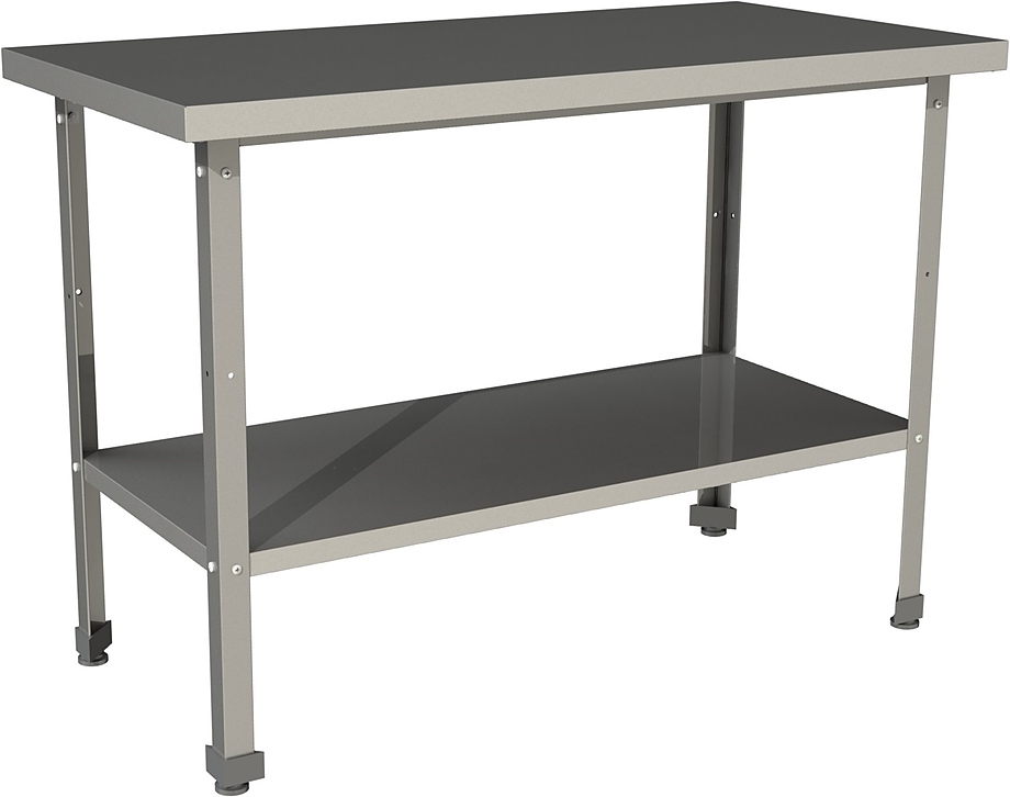 Производственный стол Restoinox СП-8/6-П-ЭЦ серии 600 предназначен для обработки продуктов питания, раскатки теста, хранения кухонного инвентаря и оборудования на предприятиях общественного питания, торговли и пищевых производствах. Опоры ножек регулируются по высоте. Материал ножек - уголок из оцинкованной стали, материал рабочей поверхности и полки - нержавеющая сталь AISI 430.