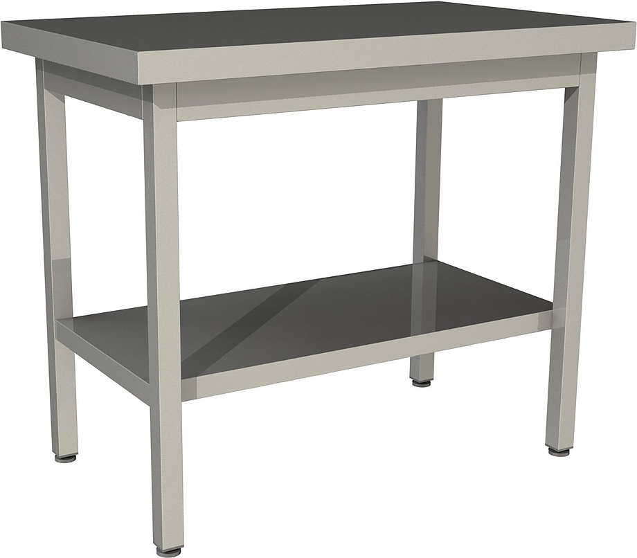 Производственный стол Restoinox СП-15/6-П серии 600 предназначен для обработки продуктов питания, раскатки теста, хранения кухонного инвентаря и оборудования на предприятиях общественного питания, торговли и пищевых производствах. Опоры ножек регулируются по высоте. Материал каркаса - нержавеющий профиль (40х40 мм), материал рабочей поверхности - нержавеющая сталь AISI 430, материал полки - сплошная нержавеющая сталь.