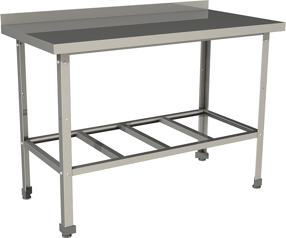 Производственный стол Restoinox СП-4/7-БР-ЭН серии 700 предназначен для обработки продуктов питания, раскатки теста, хранения кухонного инвентаря и оборудования на предприятиях общественного питания, торговли и пищевых производствах. Опоры ножек регулируются по высоте. Материал ножек - уголок из нержавеющей стали AISI 430 (40х40 мм), материал рабочей поверхности и решетки - нержавеющая сталь AISI 430.